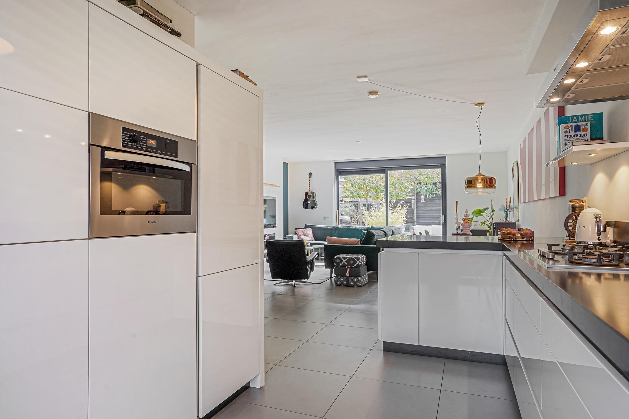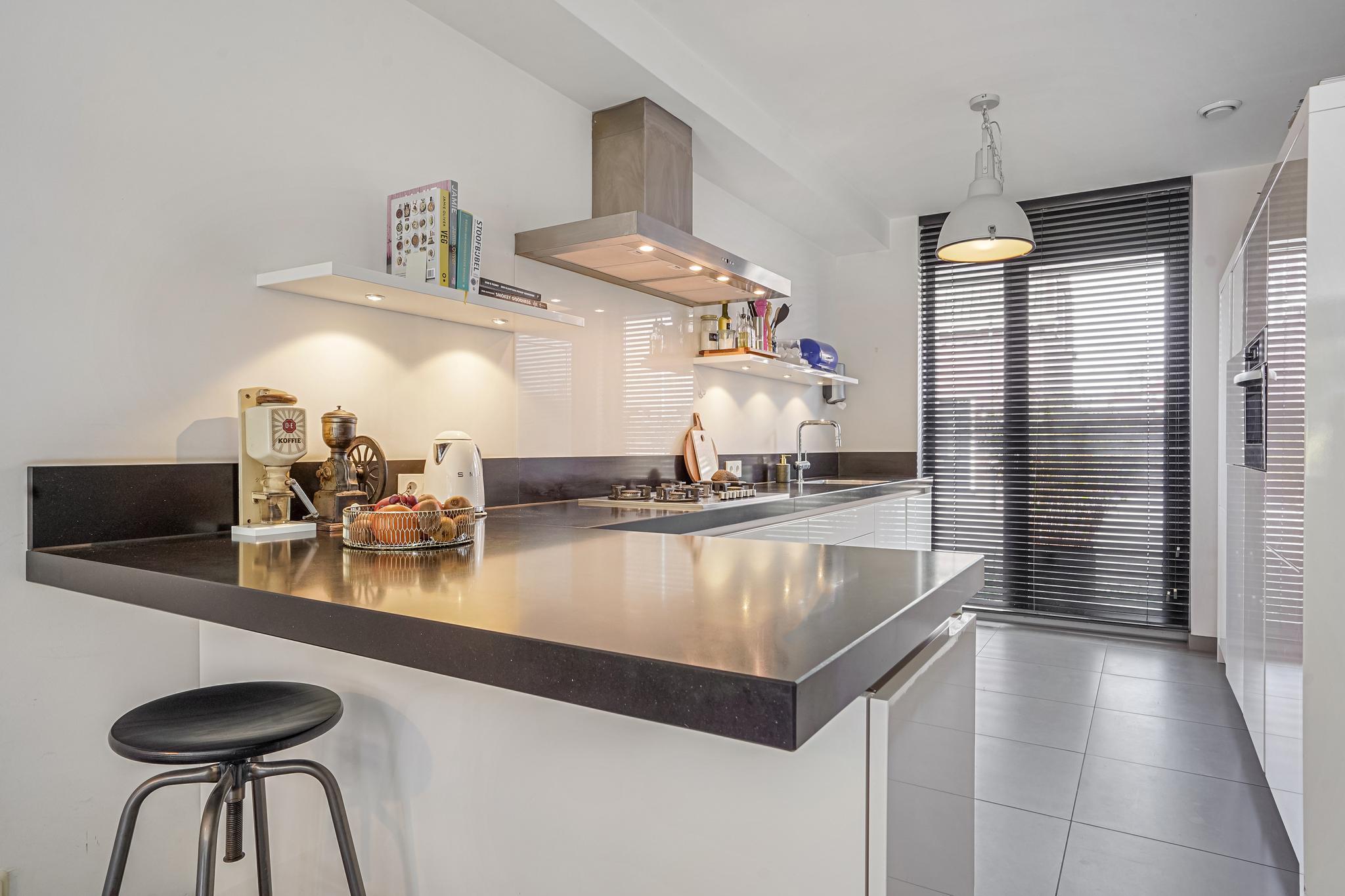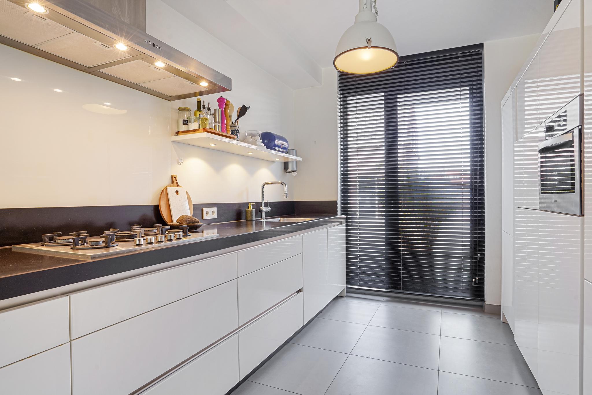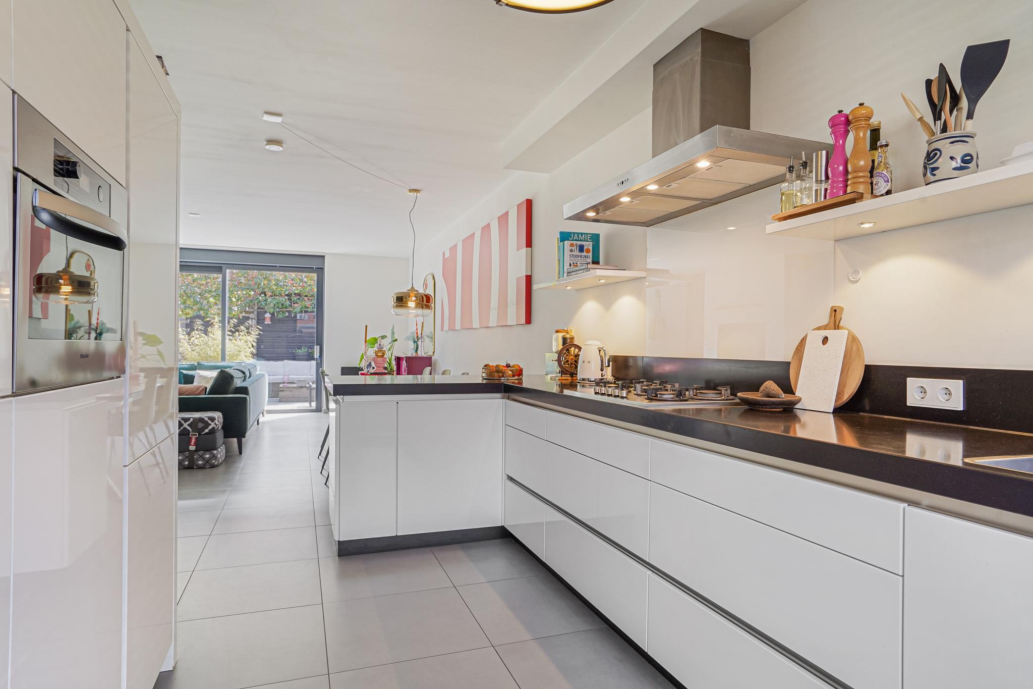 De open keuken is voorzien van een luxe keukeninrichting voorzien van diverse laden en kastjes, pannen carrousel, composiet werkblad, combi oven/magnetron, Liebherr koelkast en vriezer, vaatwasmachine (4 maanden oud), rvs spoelbak, 5-pits gaskookplaat en een rvs afzuigkap met directe afvoer naar buiten.