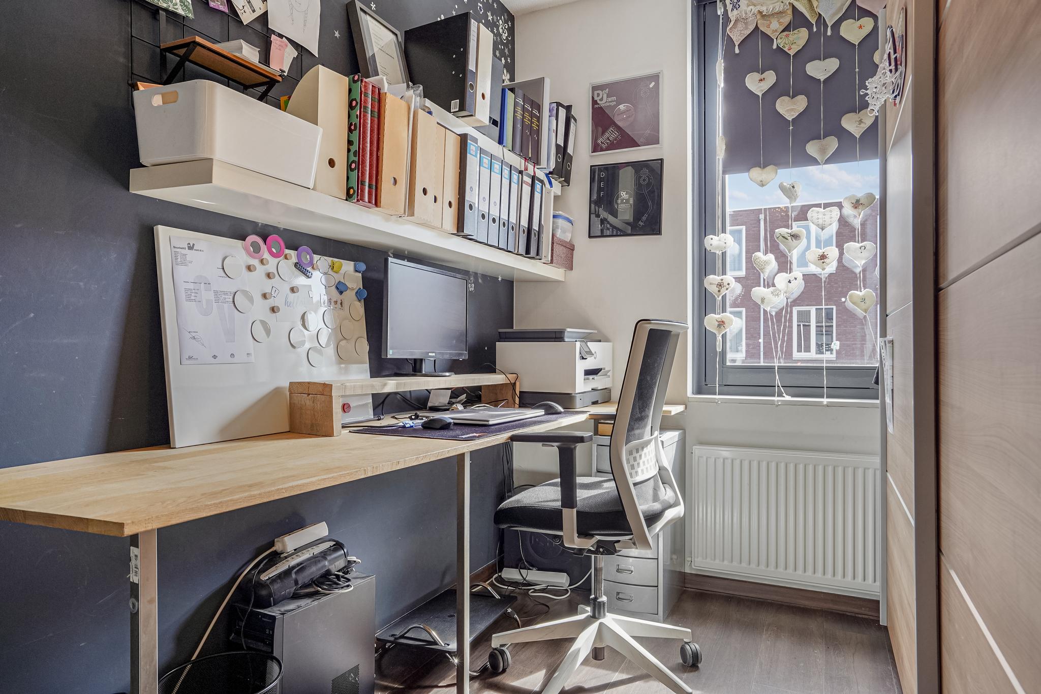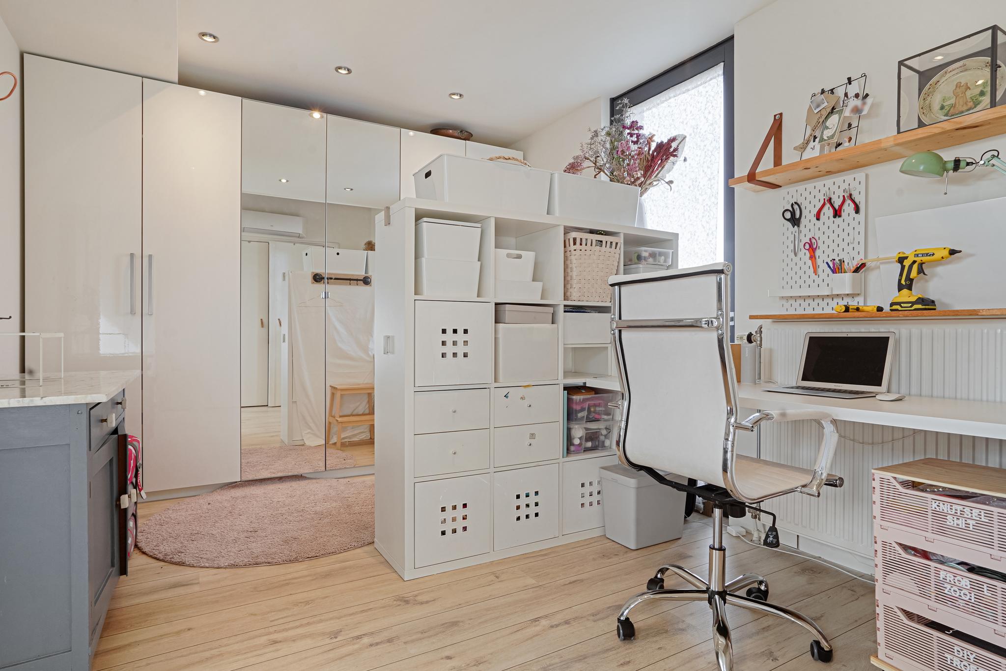 Deze zolderruimte is ingedeeld met de 4e slaapkamer en groot oppervlak die nu in gebruik is als werk/bergruimte met toegang tot de vliering en opstelling van de airco met buitenunit. Deze laatst benoemde ruimte is middels een eenvoudige ingreep als 5e slaapkamer en extra voorzolder te realiseren.