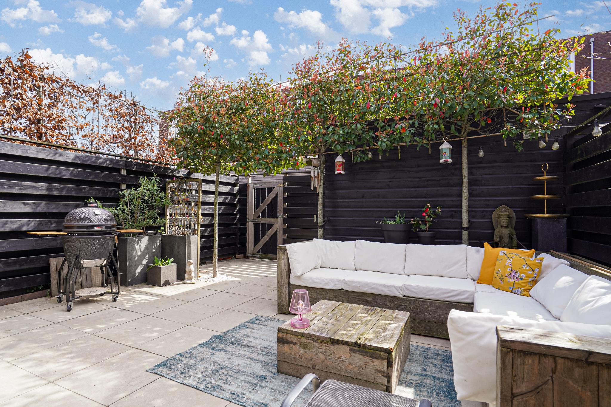 Deze is aangelegd met een mooie grote terrastegel en leuke linde boompjes welke het gehele jaar blad dragen.