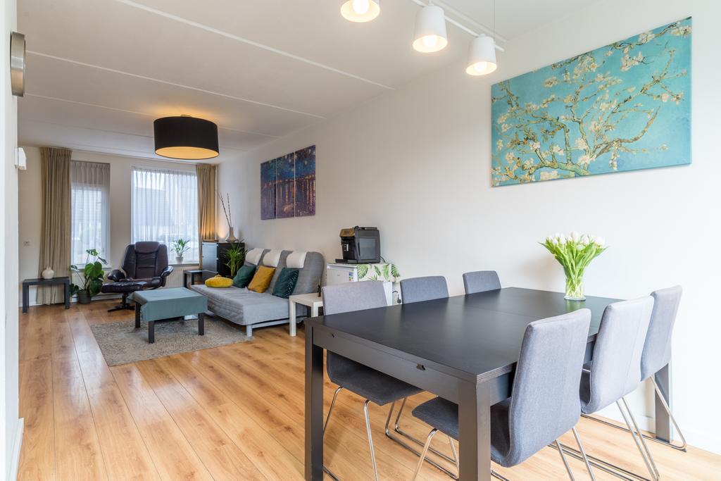 Via de entree betreedt u de hal met de toiletruimte en meterkast. Sfeervolle living. Open keuken met een complete en eigentijdse keukeninrichting in hoekopstelling voorzien van inbouwapparatuur. Achtertuin met een afsluitbare achterom en tevens toegang tot de garage. Op de 2e verdieping treft u de 3 slaapkamers, overloop en een royale badkamer. Middels vaste trap te bereiken 2e verdieping met de voorzolder en toegang tot de 4e slaapkamer met Velux dakvenster.