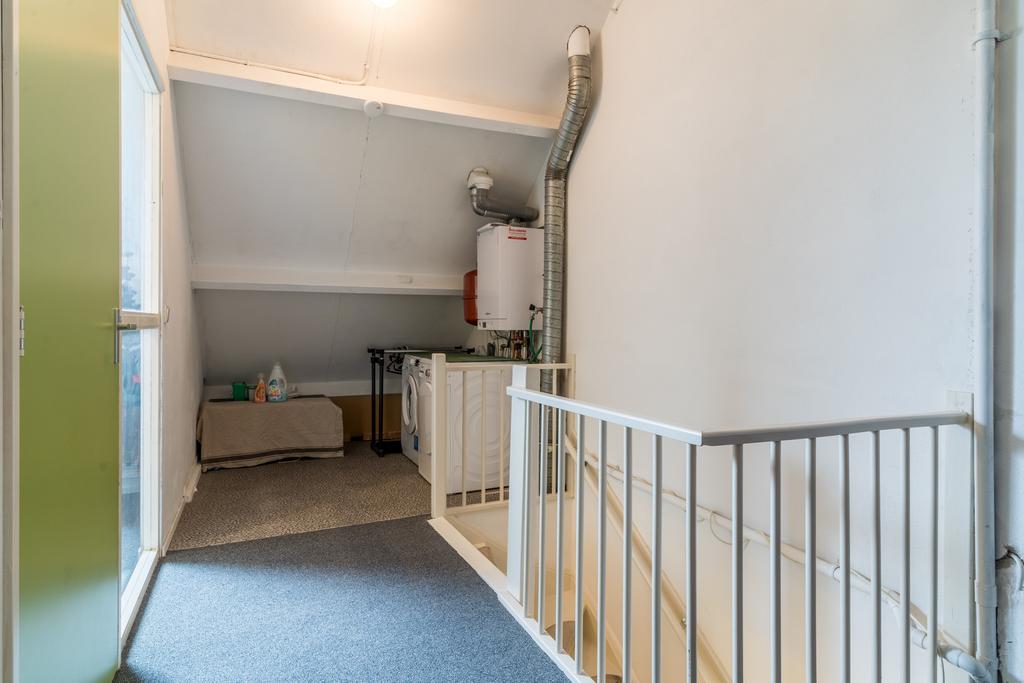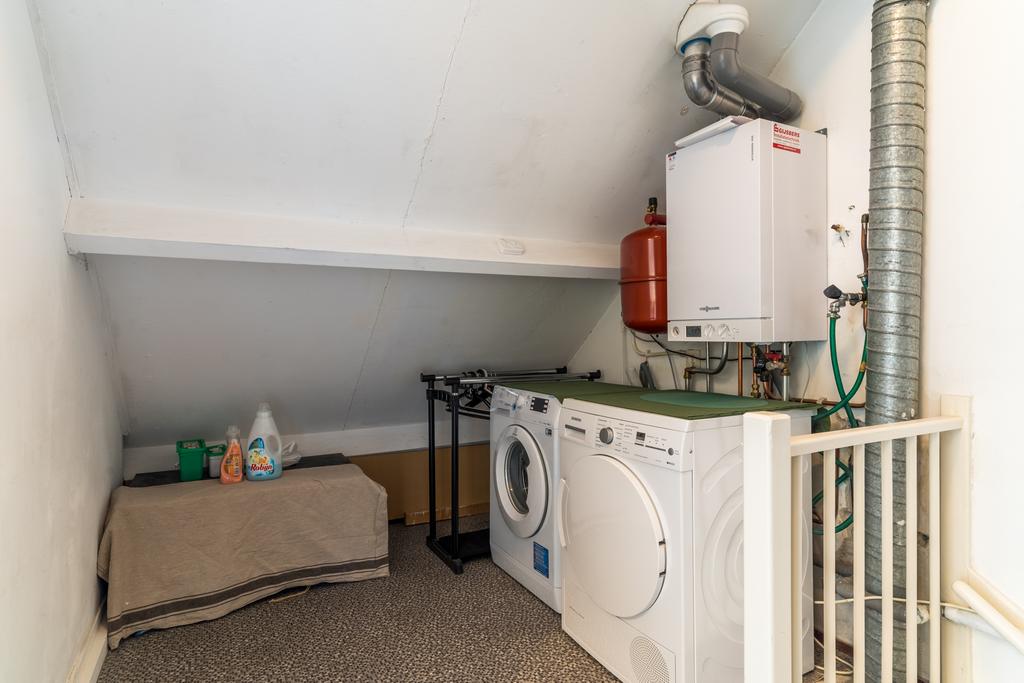 Voorzolder met de aansluiting t.b.v. wasapparatuur en opstelling van de HR c.v. combiketel van het merk Viessmann (2012).