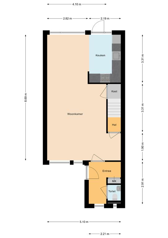 Hal afgewerkt met een Vinyl vloer, stucwerk wanden en een spuitwerk plafond.