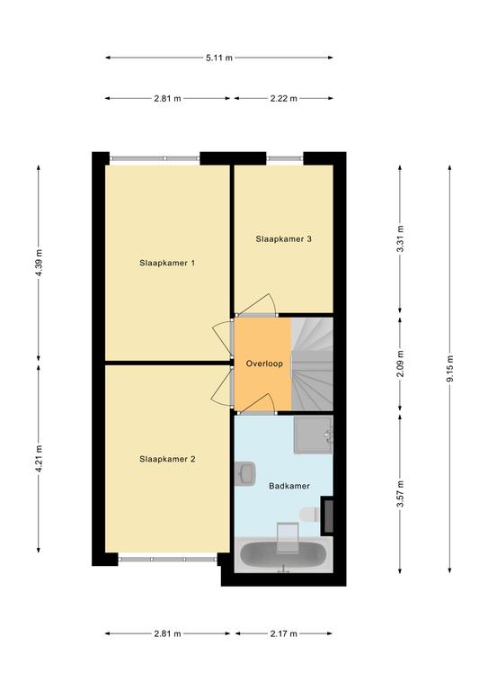 Slaapkamer 3 aan voorzijde is afgewerkt met vloerbedekking, pleisterwerk wanden en een spuitwerk plafond.